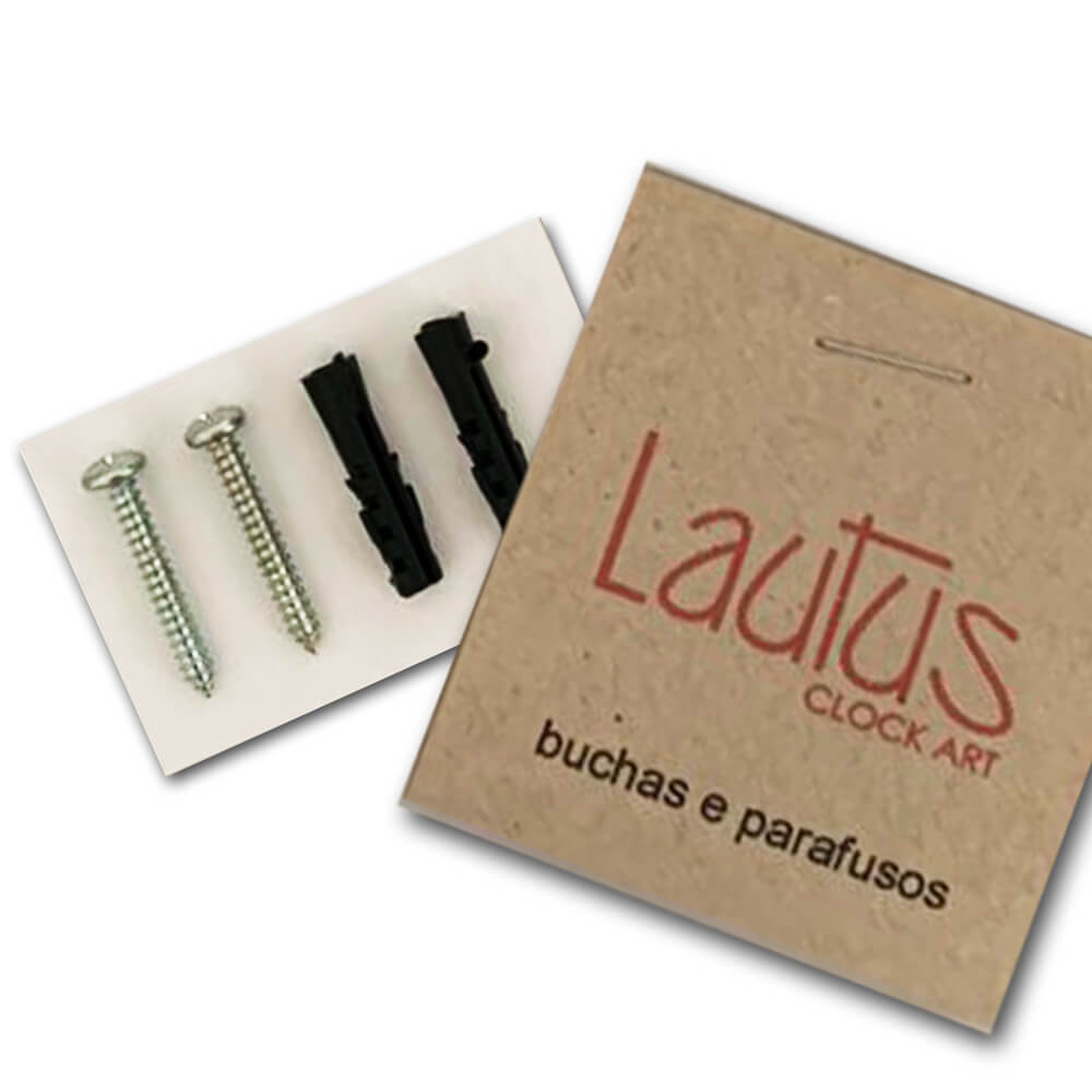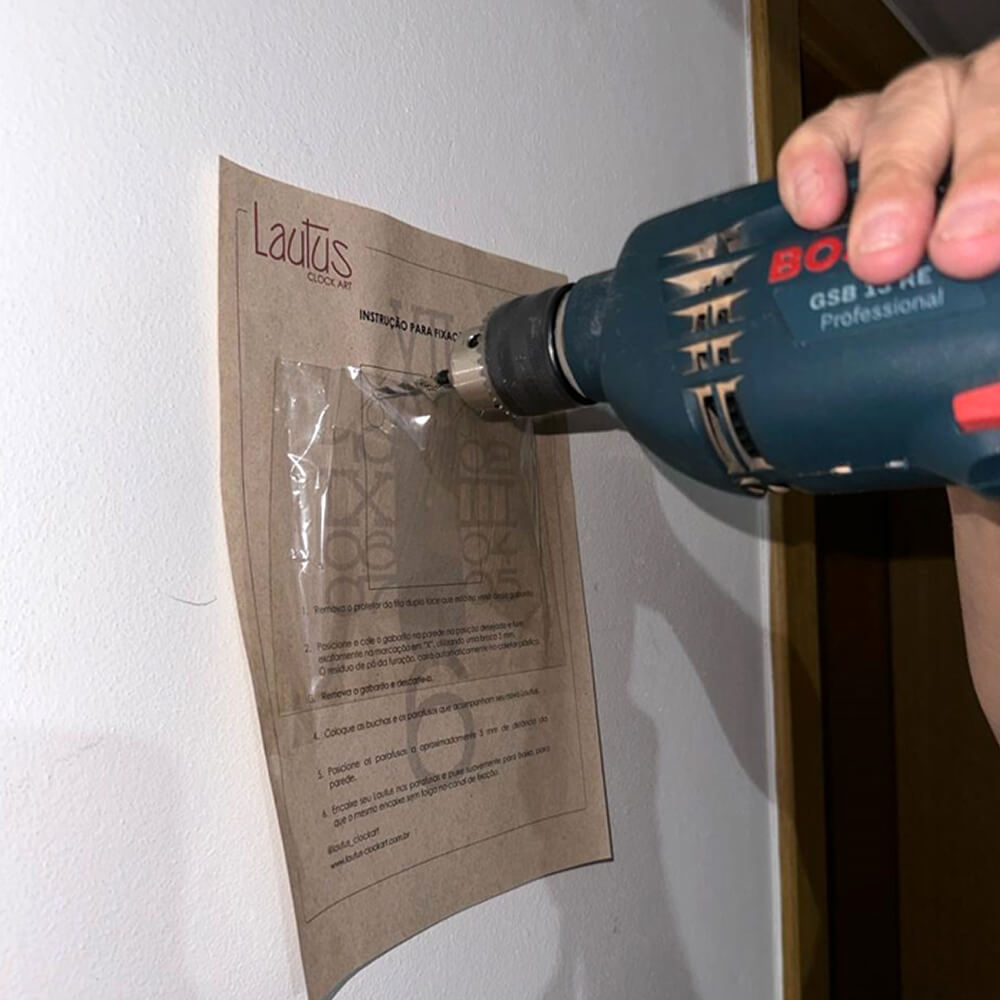 Fixe os 02 parafusos que acompanham seu relógio Lautus, mantendo-os a uma distância de 5 mm da parede.