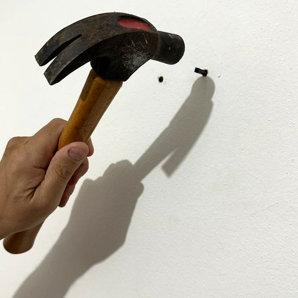 Com o auxílio de um martelo, insira as buchas que acompanham o produto.