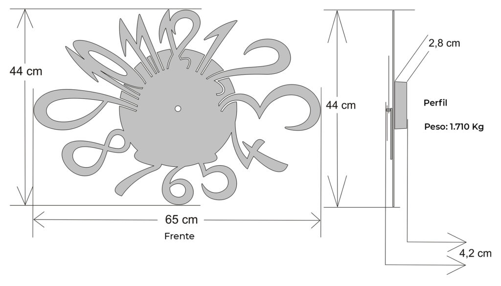 Um produto desigual. O design com os números vazados fazendo parte do núcleo da peça, dão um toque de leveza e charme.
